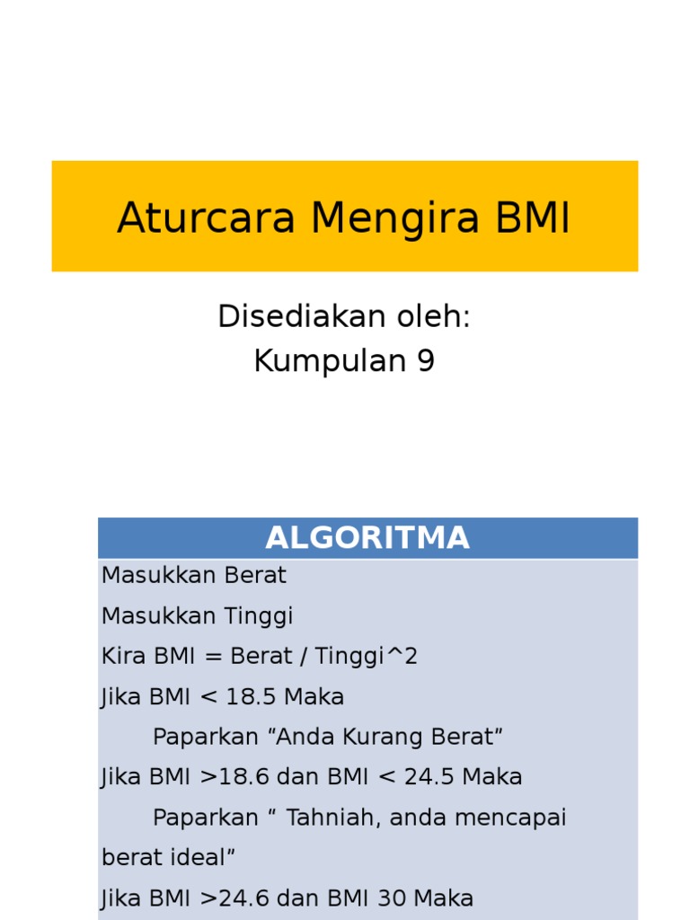 Contoh Pseudokod Mengira Bmi Dan Kategori Berat Badan